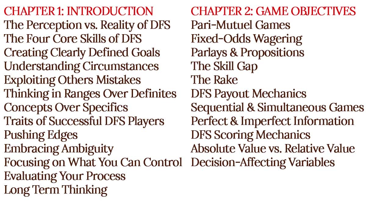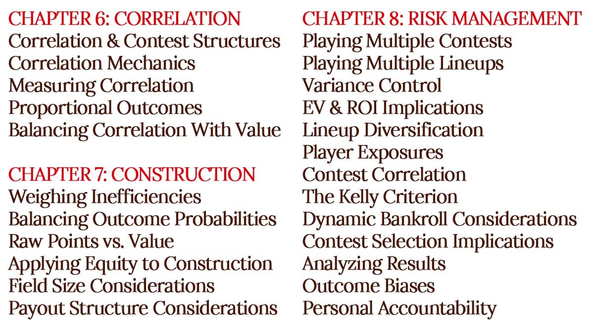 Designed for the "average" DFS player, an understanding of advanced math is not needed to fully digest this course as our teaching approach focuses on explaining concepts in simpler terms rather than on complicated formulas and exact calculations.